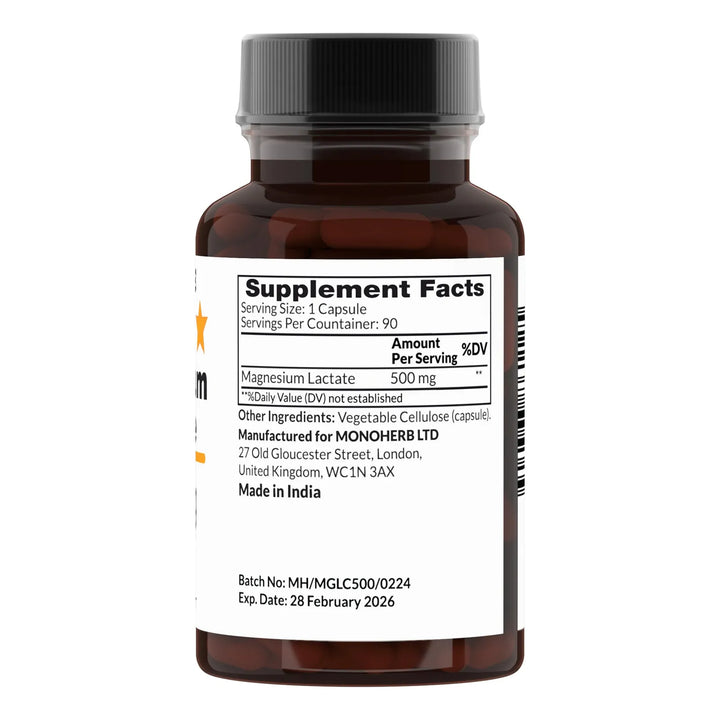 Este suplemento premium, formulado con lactato de magnesio de alta biodisponibilidad, está diseñado para quienes buscan una solución natural y efectiva. A diferencia de otras formas de magnesio, el lactato es suave con el estómago y se absorbe rápidamente, lo que significa menos molestias y más beneficios desde la primera dosis. Cada cápsula contiene 500mg puros, sin aditivos, rellenos ni conservantes, garantizando que solo recibas lo que tu cuerpo necesita.