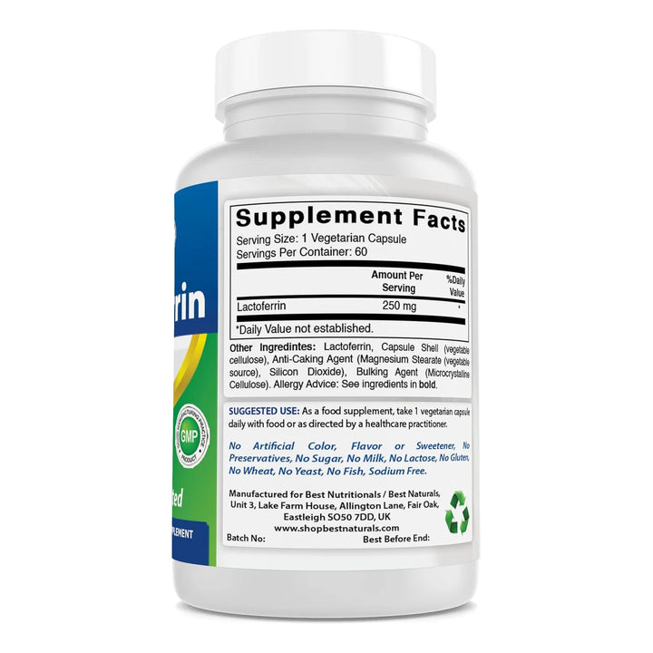 - 250 mg de Lactoferrina por Cápsula: Dosificación óptima para un apoyo inmunológico efectivo. 😊