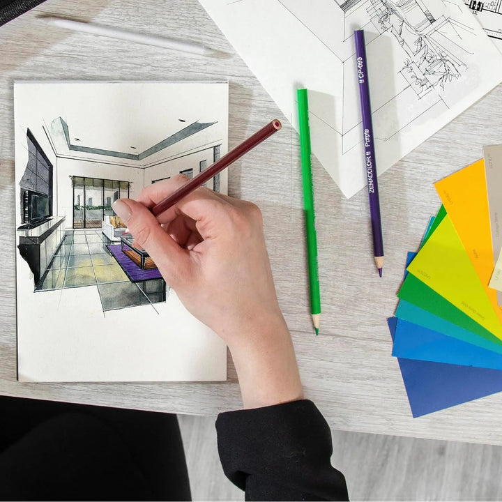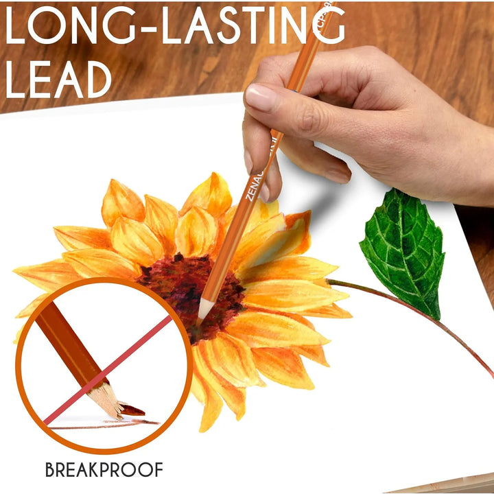 Los lápices Zenacolor logran su magia gracias a una fórmula especial soluble en agua. Al dibujar, depositas pigmentos que luego puedes activar con un pincel húmedo, creando efectos de acuarela profesionales. Las minas gruesas permiten cubrir grandes áreas, mientras que la punta afilada detalla con precisión.