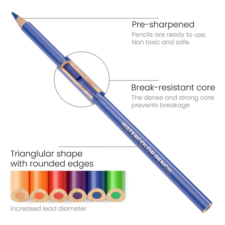 Con su forma triangular única, estos lápices se adaptan perfectamente a tu mano, evitando que se resbalen y permitiéndote trabajar durante horas sin fatiga. Su pigmentación intensa y su capacidad para mezclarse con agua te darán resultados profesionales, ya sea que estés coloreando, dibujando o pintando. No importa si eres un principiante o un experto, estos lápices están diseñados para inspirarte.