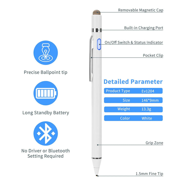 El secreto está en su tecnología capacitiva avanzada que detecta la presión y el movimiento con increíble precisión. Al activarse, crea un campo electromagnético que interactúa perfectamente con tu pantalla táctil, registrando cada movimiento con una sensibilidad que parece leer tu mente.