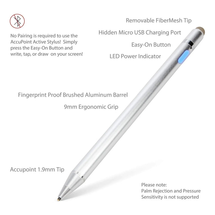 ¿Cansado de los lápices ópticos que requieren complicados emparejamientos? Olvídate de eso. Con solo presionar un botón, el AccuPoint Active Stylus se activa, emitiendo pulsos electrónicos que interactúan directamente con tu pantalla. No necesitas configuraciones, ni aplicaciones adicionales. Simplemente enciéndelo y comienza a crear, tomar notas o navegar como nunca antes.