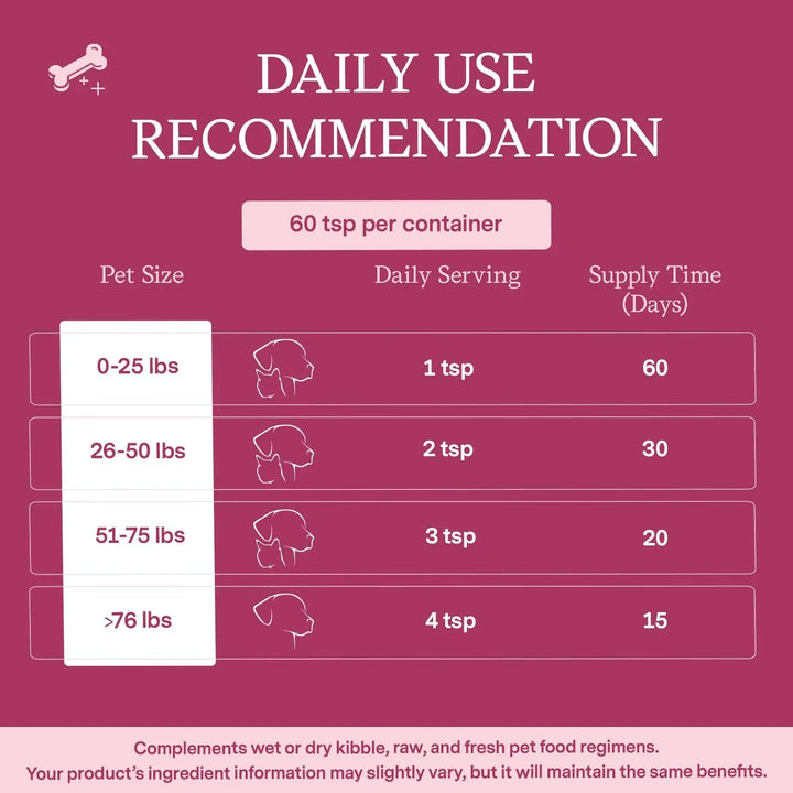 - Mezcla con la comida habitual de tu mascota o adminístrala directamente.