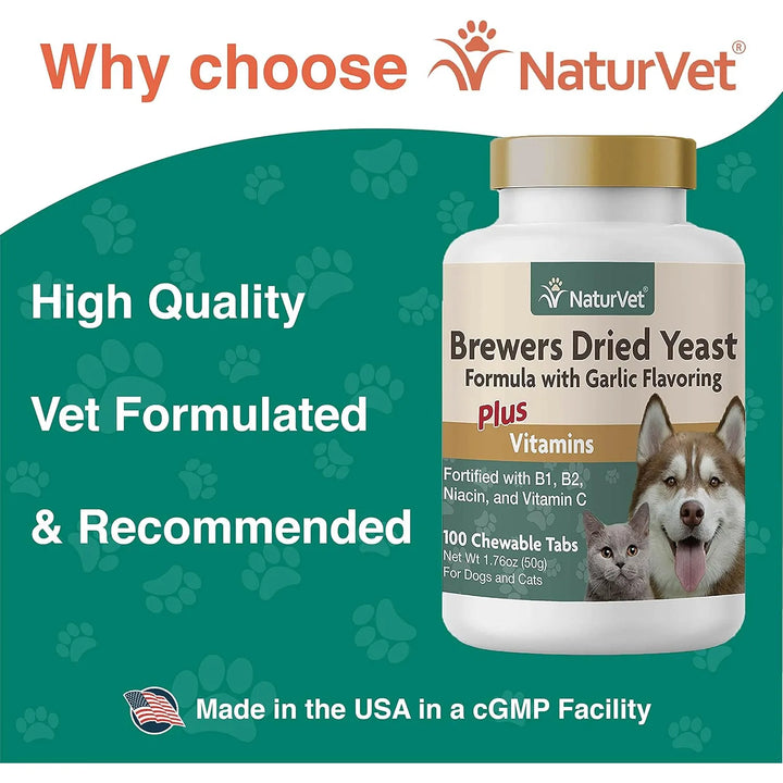 La levadura seca con sabor a ajo y vitaminas de NaturVet actúa como un suplemento nutricional completo. Su fórmula rica en vitaminas del complejo B y vitamina C ayuda a mantener el metabolismo energético de tu mascota, mientras que la levadura desamargada promueve una piel y pelaje saludables. El sabor a ajo asegura que tu mascota disfrute cada tableta, haciendo que la administración sea sencilla y placentera.