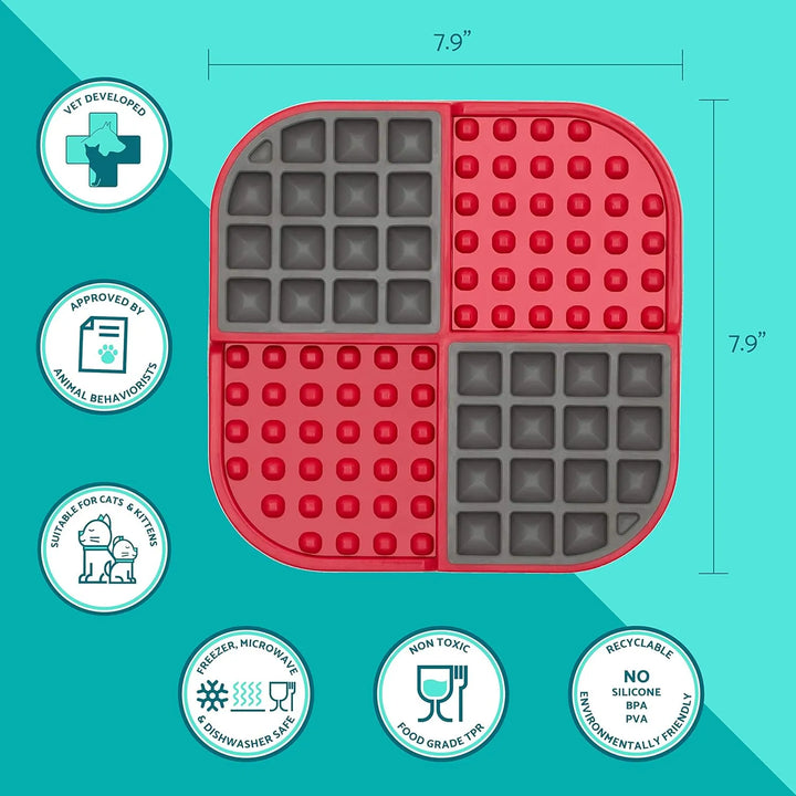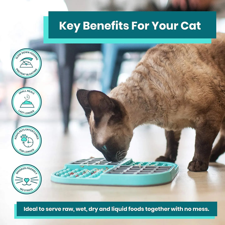El secreto está en su diseño inteligente: las protuberancias y texturas obligan a tu gato a lamer metódicamente, ralentizando su ingesta. Al extender el tiempo de comida, su sistema digestivo procesa mejor los alimentos, mientras la acción de lamer genera saliva que combate el sarro y mantiene su boca saludable.