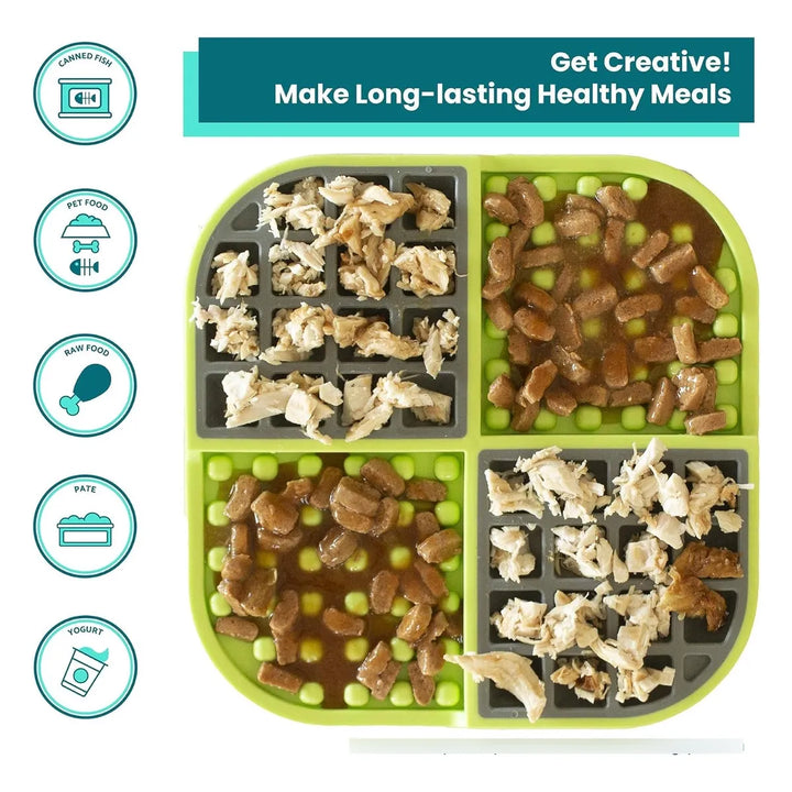 - 🐾 Versatilidad absoluta: Sirve alimentos húmedos, secos, yogur o mantequilla de maní sin desorden. ¡Crea combinaciones deliciosas!