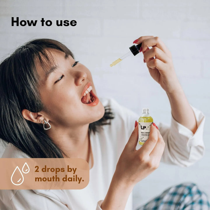 - Toma 10 gotas directamente o mezcladas con tu bebida favorita