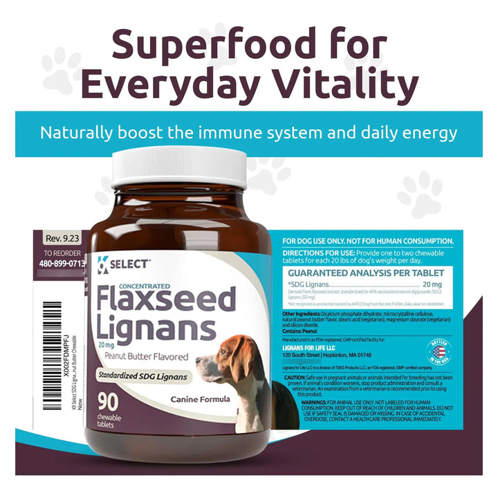 - 💪 Fórmula de alta concentración: Cada tableta ofrece 20 mg de lignanos SDG, maximizando los beneficios para la salud de tu perro.