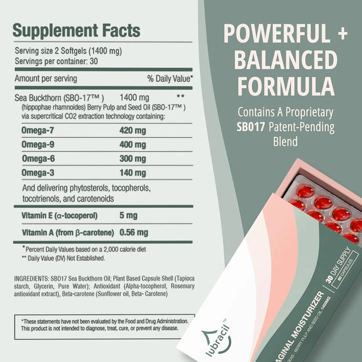 Nuestro hidratante vaginal actúa desde dentro para restaurar el equilibrio natural de tu zona íntima. Los ácidos grasos esenciales (omegas 6, 7 y 9) nutren los tejidos vaginales, mientras que las vitaminas A y E protegen y regeneran las células. El aceite de espino amarillo, conocido por sus propiedades hidratantes, forma una barrera protectora que mantiene la humedad donde más se necesita.