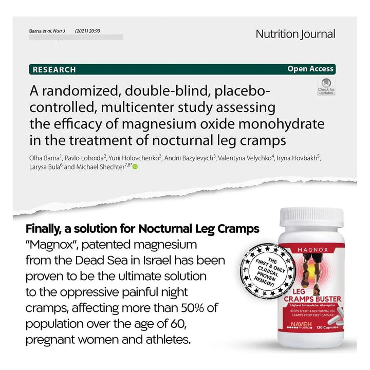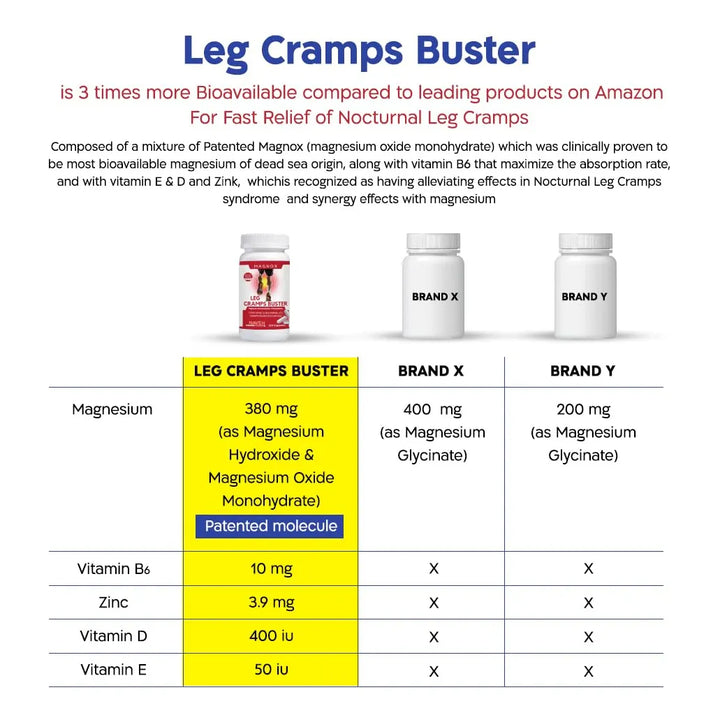 ¿Te despiertas en medio de la noche con dolorosos calambres en las piernas? Imagina poder dormir profundamente, sin interrupciones, sintiendo cómo tus músculos se relajan y recuperan su vitalidad. Con nuestro Magnesio 380 mg Leg Cramps Buster, ese sueño se hace realidad. Este suplemento clínicamente formulado no solo alivia los calambres, sino que también mejora tu calidad de sueño y bienestar general desde la primera noche.
