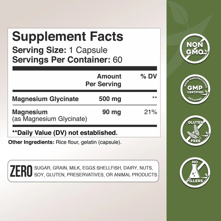 - Fórmula de magnesio glicinato puro de 500mg por cápsula, la dosis óptima para resultados visibles 😴