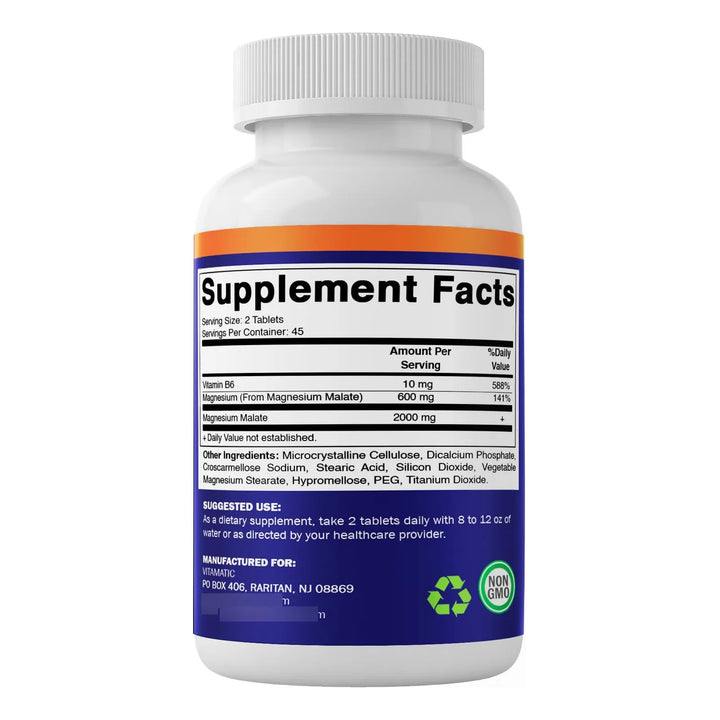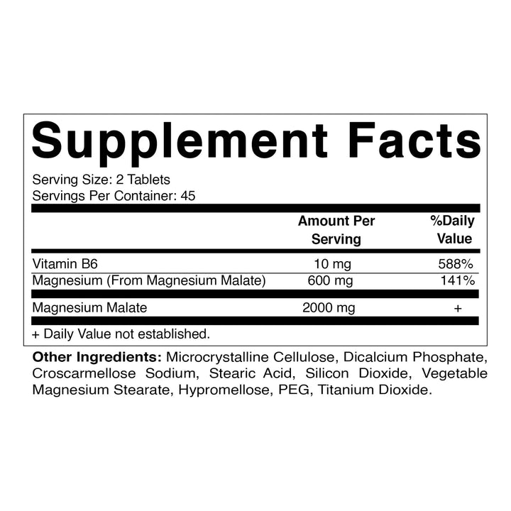 - Dosis potente: 2000 mg de malato de magnesio por porción (2 tabletas) ⚡