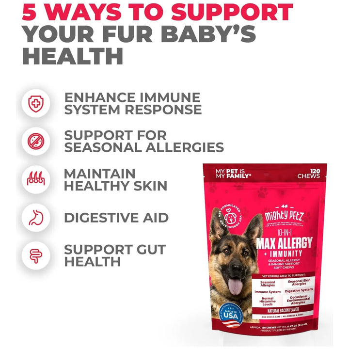 ¿Tu perro no deja de rascarse? ¿Su piel está irritada y no sabes cómo ayudarlo? Los Masticables Alivio Picazón Alergias para Perros son la solución natural que estabas buscando. Formulados por veterinarios y fabricados en Estados Unidos, estos masticables no solo calman la picazón, sino que fortalecen su sistema inmunológico para que tu mascota disfrute de una vida más feliz y saludable.