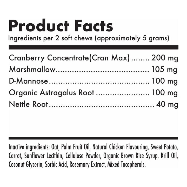 Estos masticables no son solo un suplemento más; son una solución integral formulada con ingredientes naturales como arándano, D-manosa y raíz de ortiga, conocidos por sus propiedades beneficiosas para el sistema urinario. Ayudan a equilibrar el pH, fortalecer el sistema inmunológico y promover la desintoxicación renal, todo en un delicioso formato que a tu mascota le encantará.