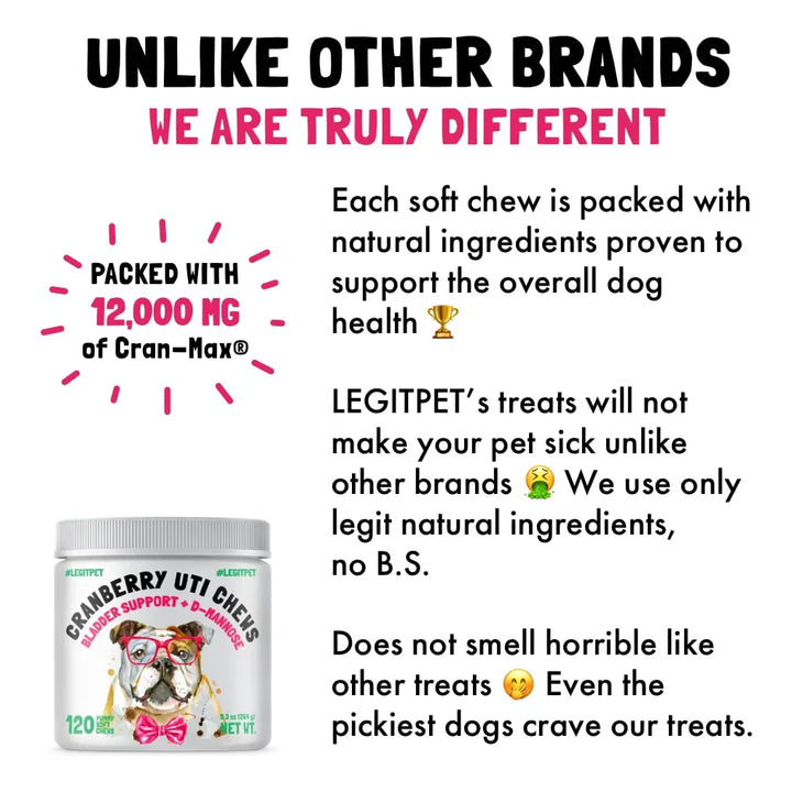 ¿Te preocupa la salud de tu perro? Imagina verlo sufrir cada vez que intenta orinar, luchando contra el dolor y la incomodidad de una infección urinaria. No dejes que eso suceda. Nuestros Masticables de Arándano para Perros están diseñados específicamente para apoyar la salud del tracto urinario, los riñones y la vejiga, brindando alivio y prevención de manera natural.