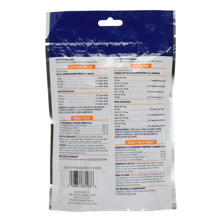 La glucosamina es un componente natural que ayuda a mantener las articulaciones sanas y lubricadas, reduciendo el dolor y la inflamación. Nuestros masticables están especialmente formulados para perros, con un delicioso sabor que les encantará. No más batallas para darle sus suplementos: ¡ahora los pedirán como premios!
