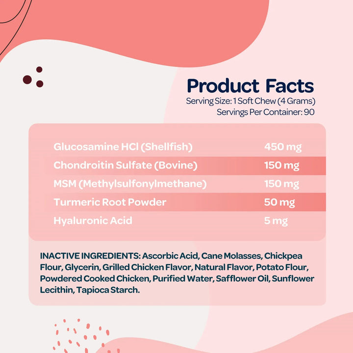 Imagina ver a tu perro saltar, correr y jugar como cuando era cachorro. Estos masticables están formulados con ingredientes premium como glucosamina, condroitina, MSM y cúrcuma, combinados científicamente para apoyar la salud articular desde el primer uso. No es magia, es ciencia hecha con cariño.