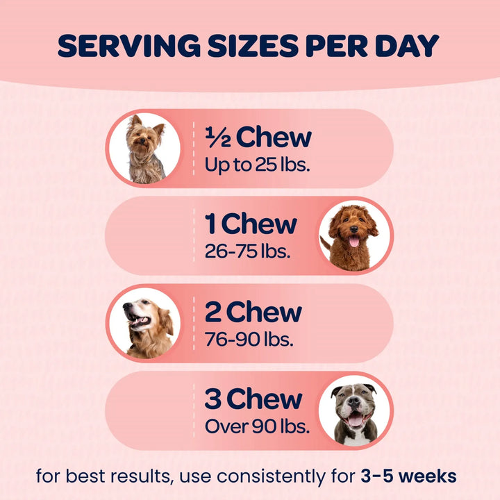 - Dosis Conveniente: Masticables blandos fáciles de dosificar según el peso de tu mascota ⚖️