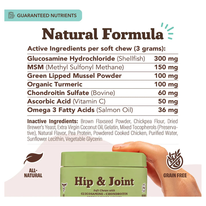 Nuestros masticables actúan desde el primer día. La glucosamina y condroitina reparan y fortalecen los cartílagos, mientras que el MSM reduce la inflamación y el dolor. La cúrcuma, conocida por sus propiedades antiinflamatorias, complementa el efecto, brindando un alivio duradero. Con el uso continuo, notarás cómo tu perro recupera su movilidad y vitalidad.