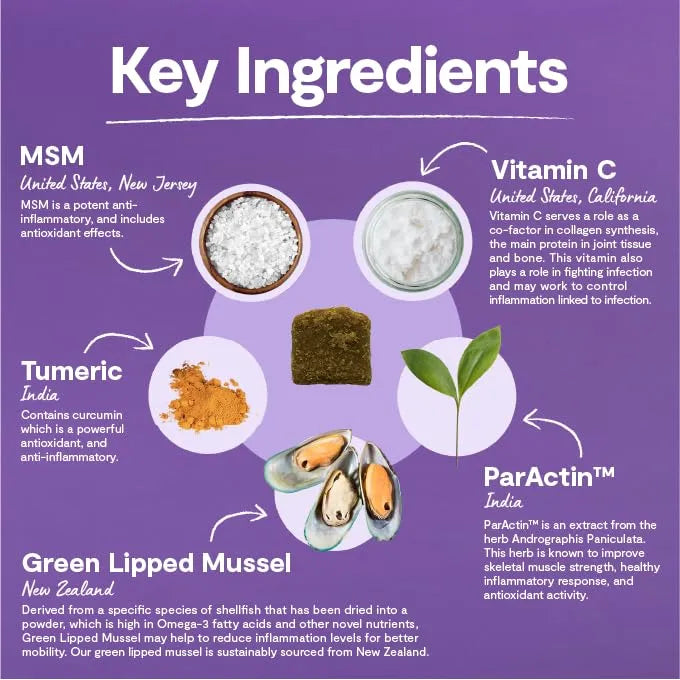 Nuestros masticables actúan desde la primera dosis. Los ingredientes clave, como el mejillón de labios verdes, son ricos en ácidos grasos omega-3 y glucosaminoglicanos, que reducen la inflamación y promueven la regeneración del cartílago. Esto se traduce en menos rigidez, mayor flexibilidad y una notable mejora en la movilidad de tu perro en cuestión de semanas.