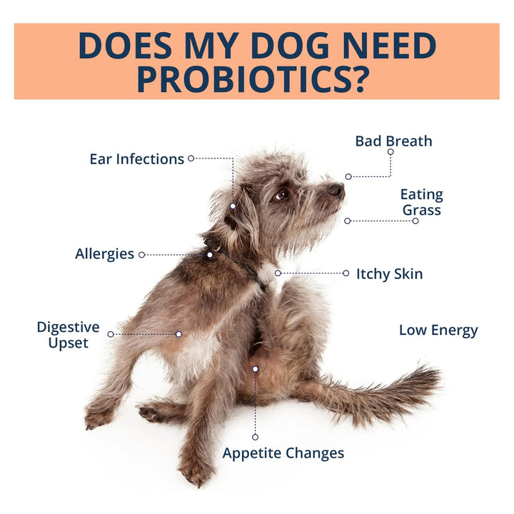 Estos masticables no solo son irresistibles para tu perro, sino que también contienen una mezcla única de 6 cepas probióticas, calabaza y linaza, diseñadas para equilibrar su flora intestinal y promover una digestión saludable. Con 2.5 mil millones de UFC por porción, cada bocado es un paso hacia una vida más saludable y activa para tu mejor amigo.