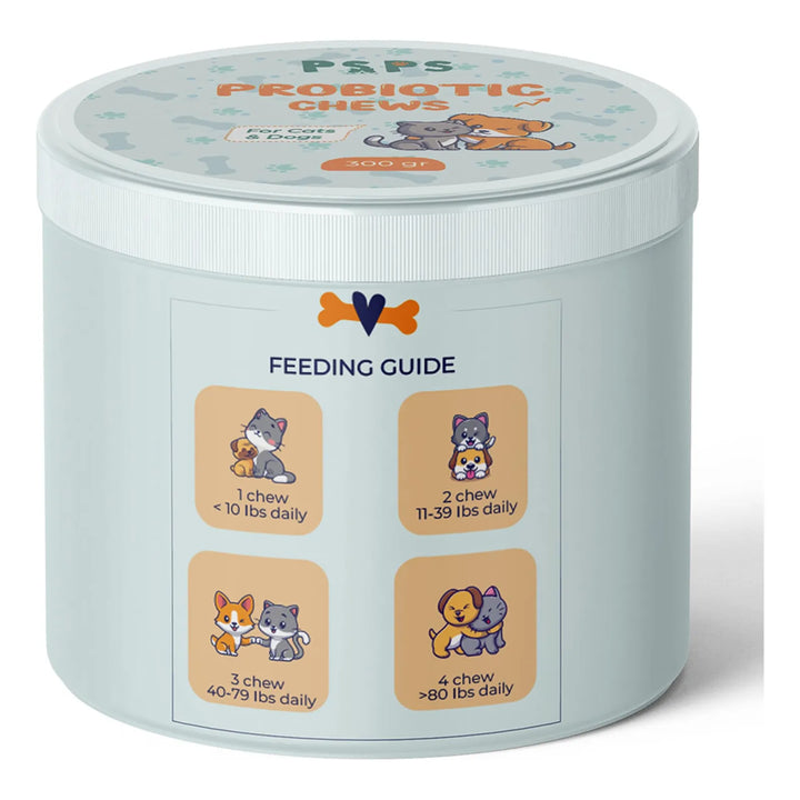 Cada masticable es una poderosa combinación de probióticos clínicamente probados como Ganeden BC30 y Lactobacillus acidophilus, que trabajan en sinergia para combatir bacterias dañinas, reducir la diarrea y mejorar la absorción de nutrientes. No más noches sin dormir por los ruidos estomacales de tu peludo, no más preocupaciones por alergias que le impiden disfrutar de sus juegos favoritos.
