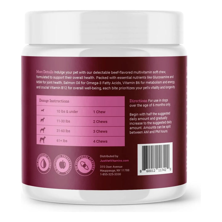 ¿Quieres lo mejor para la salud de tu perro? Descubre los Masticables Sabor Frutas con Vitaminas y Minerales Multinutr, una solución deliciosa y nutritiva diseñada para fortalecer el sistema inmunológico, mejorar la energía y cuidar de su piel, pelaje y articulaciones. ¡Tu mascota se merece lo mejor, y aquí lo tienes!