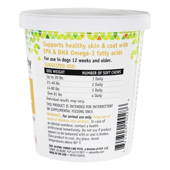 ¿Tu perro sufre de piel seca o pelaje opaco? Imagina verlo con un pelo brillante, suave y saludable en solo semanas. Los Masticables Suaves de Aceite de Salmón Vet Worthy son la solución que estabas buscando. Formulados por veterinarios, estos deliciosos masticables no solo mejoran la apariencia de tu mascota, sino que también fortalecen su salud desde adentro.