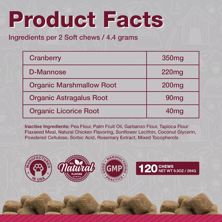 ¿Te preocupa la salud urinaria de tu perro? Imagina un producto que no solo previene infecciones, sino que también limpia y neutraliza olores. Nuestros Masticables Suaves de Arándano son la solución holística que tu mascota merece. Formulados por veterinarios en Estados Unidos, estos suplementos combinan D-manosa y antioxidantes para un apoyo integral del tracto urinario, riñones y vejiga. ¡Di adiós a las molestias y hola a una vida más feliz para tu peludo!