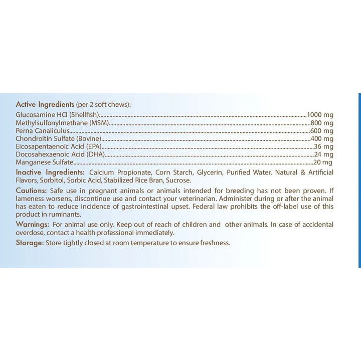 Imagina a tu perro volviendo a saltar de emoción, jugando sin molestias y disfrutando cada paseo como cuando era cachorro. Esto es posible gracias a nuestra fórmula premium con glucosamina, condroitina y Perna Canaliculus, ingredientes clínicamente probados para aliviar el dolor y mejorar la movilidad. No es solo un suplemento, es un acto de amor que le dará más años de vitalidad.