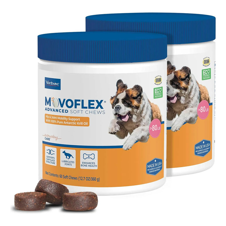 Suplemento avanzado de apoyo para cadera y articulaciones masticables suaves para perros grandes - Movoflex 120 unidades por Virbac