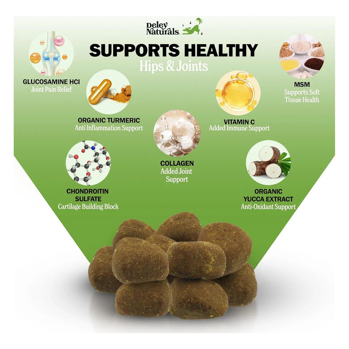Los ingredientes activos trabajan en sinergia: la glucosamina repara el cartílago dañado, la condroitina bloquea las enzimas que lo destruyen, y el MSM reduce la inflamación. La cúrcuma añade un efecto antioxidante para una recuperación más rápida. ¡Es como un equipo de superheroes para las articulaciones de tu perro!