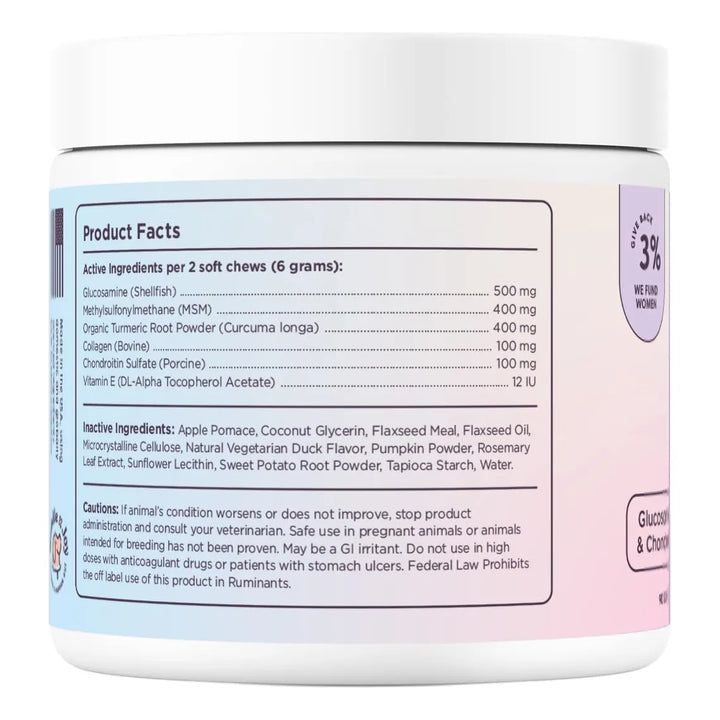 - 500 mg de glucosamina por cada 2 masticables, para un apoyo articular óptimo 💪.