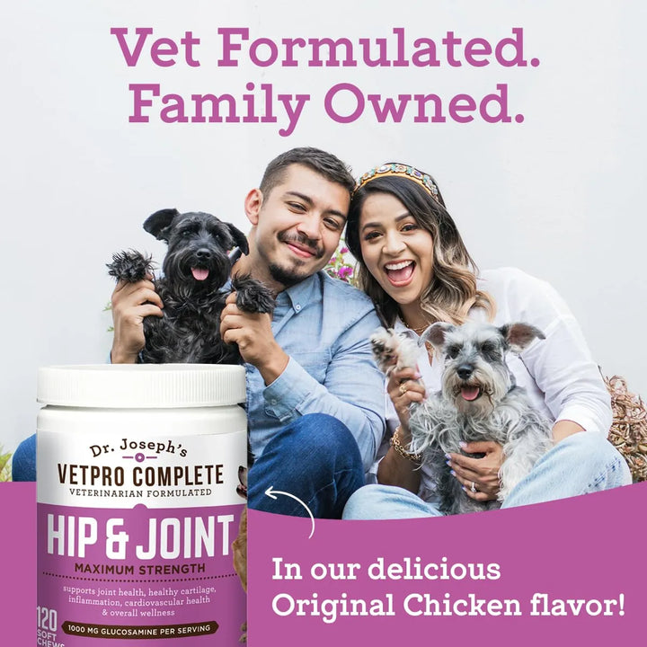 ¿Tu perro sufre de dolor en las articulaciones, rigidez o incluso displasia de cadera? Imagina verlo correr y jugar como antes, libre de dolor y lleno de energía. Nuestros masticables suaves con glucosamina, condroitina, MSM, cúrcuma y Omega 3 están diseñados para devolverle la vitalidad a tu mejor amigo. Formulados por el Dr. Joseph, un veterinario con más de 30 años de experiencia, estos suplementos no solo alivian el dolor, sino que también promueven la salud del corazón, la piel y el pelaje.