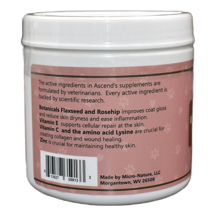 Los activos clave (linaza, rosa mosqueta, vitaminas E y C, zinc y lisina) trabajan en sinergia para nutrir la piel, reducir la inflamación y estimular la regeneración celular. La linaza aporta ácidos grasos omega-3, mientras que la rosa mosqueta es rica en antioxidantes. Juntos, estos ingredientes restauran la salud de la piel y el pelaje desde la raíz.