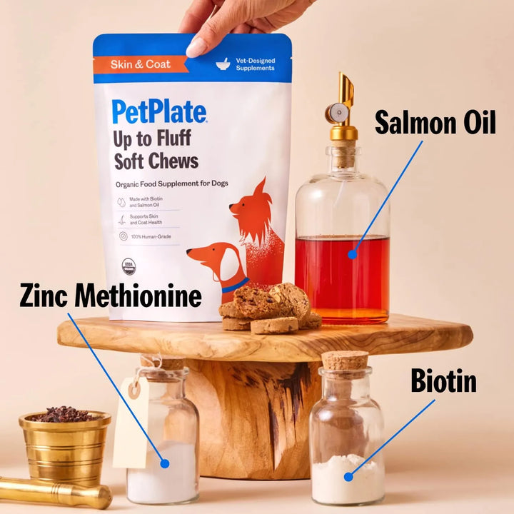 Nuestros masticables suaves están diseñados para nutrir la piel y el pelaje de tu perro desde el interior. El aceite de salmón es rico en ácidos grasos omega-3, que reducen la inflamación y mejoran la salud de la piel, mientras que la biotina fortalece el pelaje, haciéndolo más resistente y brillante. Juntos, estos ingredientes trabajan sinérgicamente para transformar la apariencia y comodidad de tu mascota en solo semanas.