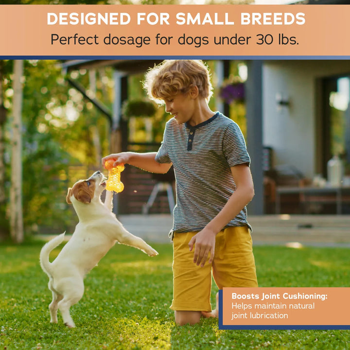 Nuestros Masticables Suaves para Perros Pequeños con Glucosamina, Condroitina y MSM son el aliado perfecto para cuidar las articulaciones de tu mascota. Formulados con ingredientes 100% naturales, estos suplementos no solo alivian el dolor, sino que también protegen contra futuros problemas, permitiendo que tu perro disfrute cada día al máximo.