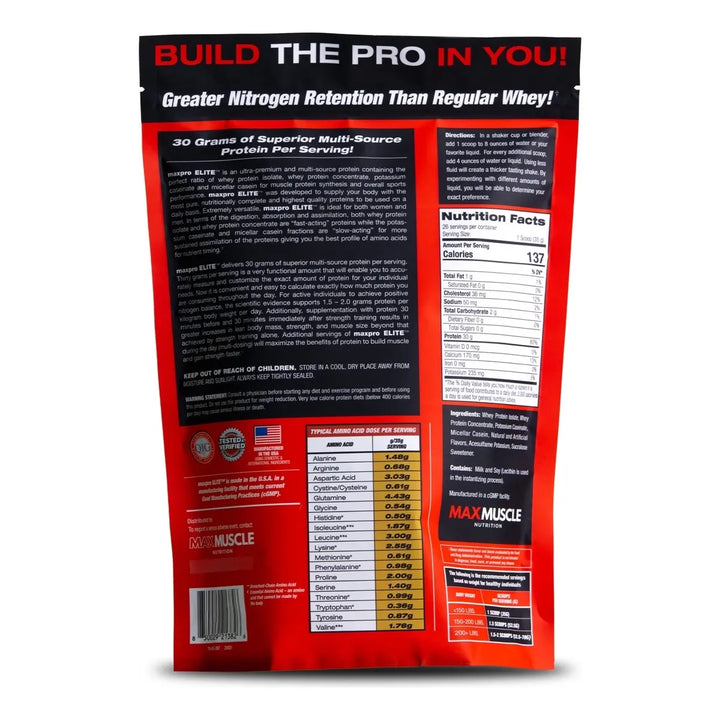 ¿Cansado de proteínas que prometen pero no cumplen? Maxpro Elite está formulado con una mezcla premium de aislado de proteína de suero de leche, concentrado de proteína de suero y proteína de caseína. Esta combinación única ofrece una liberación rápida y sostenida de aminoácidos esenciales, asegurando que tus músculos reciban el combustible que necesitan para crecer y recuperarse, sin importar cuán intenso sea tu entrenamiento.