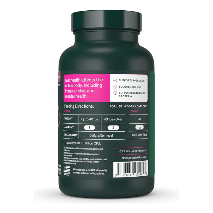 Con 5 mil millones de microorganismos por cápsula y 8 cepas diferentes, este probiótico no lácteo actúa rápidamente para restaurar la flora intestinal, mejorar la absorción de nutrientes y fortalecer su sistema inmunológico. No más visitas al veterinario por problemas digestivos, no más preocupaciones cada vez que comes algo nuevo.
