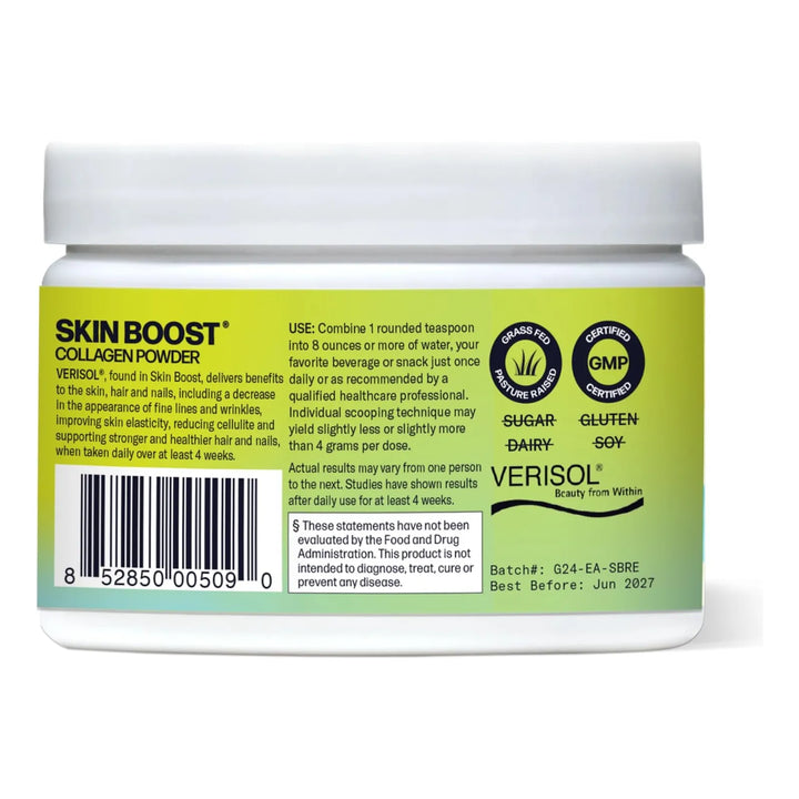 El colágeno VERISOL actúa estimulando la producción natural de colágeno en tu piel, lo que reduce las arrugas y mejora la elasticidad. La vitamina C potencia este efecto, protegiendo tu piel de los radicales libres y promoviendo un tono uniforme. Con el uso diario, notarás una piel más firme, hidratada y con un brillo saludable.