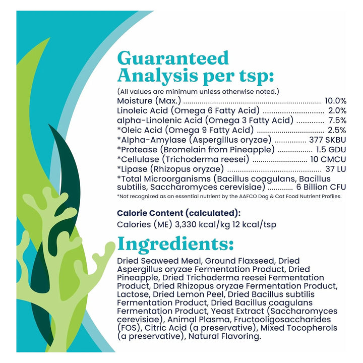 El secreto está en su triple acción: primero, las enzimas digestivas descomponen mejor los alimentos; luego, los probióticos repoblan el intestino con bacterias beneficiosas; finalmente, los nutrientes de las algas se absorben completamente gracias a este proceso optimizado. El resultado es una mascota más sana, feliz y llena de energía.