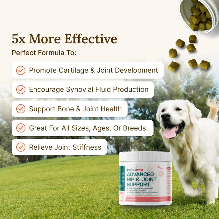 ¿Tu perro ya no corre como antes? ¿Notas que le cuesta levantarse o subir escaleras? No dejes que el dolor articular robe la alegría de tu mejor amigo. Mobility Max es la solución avanzada que tu mascota necesita para recuperar su movilidad y vitalidad. Con una fórmula diseñada por veterinarios, este suplemento no solo alivia el dolor, sino que también protege y regenera sus articulaciones para que pueda disfrutar cada día al máximo.