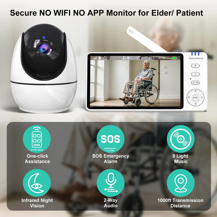Monitor Para Ancianos 5 Pulgadas Con Cámara Y Audio Detección