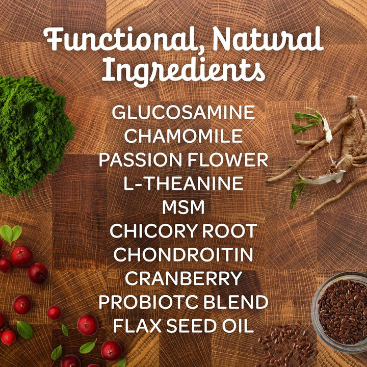 ¿Has notado que tu perro ya no corre como antes? ¿O que le cuesta levantarse después de dormir? La glucosamina y condroitina trabajan juntas para reducir la rigidez y promover la movilidad, mientras que los probióticos y la manzanilla ayudan a calmar su ansiedad y mejorar su digestión. ¡Todo en un solo producto!