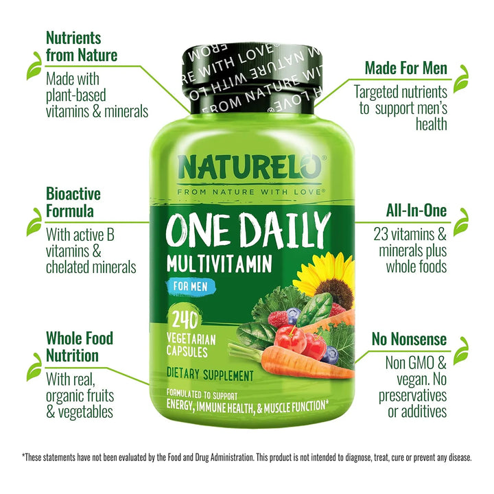 Multivitaminas Diarias Para Hombre NATURELO: Energía y Salud en Cada Cápsula