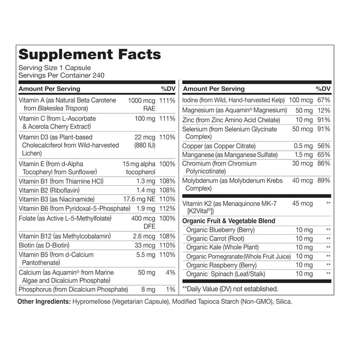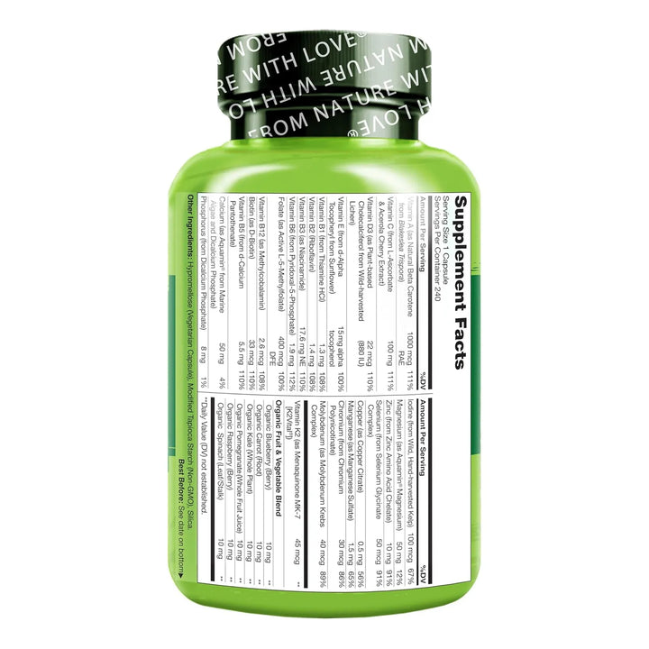 Imagina despertar cada mañana con energía renovada, sabiendo que estás dando a tu cuerpo los nutrientes que necesita para enfrentar cualquier desafío. Con 23 vitaminas y minerales esenciales, incluyendo B12, B6, vitamina K2, Zinc y Selenio en formas altamente absorbibles, estas cápsulas vegetarianas son tu aliado para una salud óptima.