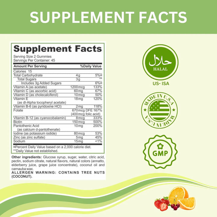 ¿Buscas una forma deliciosa y práctica de cubrir tus necesidades nutricionales diarias? Las Multivitaminas Halal en Gomitas para Adultos de Greenfield Nutritions son la solución perfecta para mantener tu energía, inmunidad y bienestar general sin sacrificar el sabor o tus principios. Diseñadas especialmente para adultos que buscan un suplemento halal, sin gelatina y lleno de nutrientes esenciales, estas gomitas son tu aliado diario para una vida más saludable.