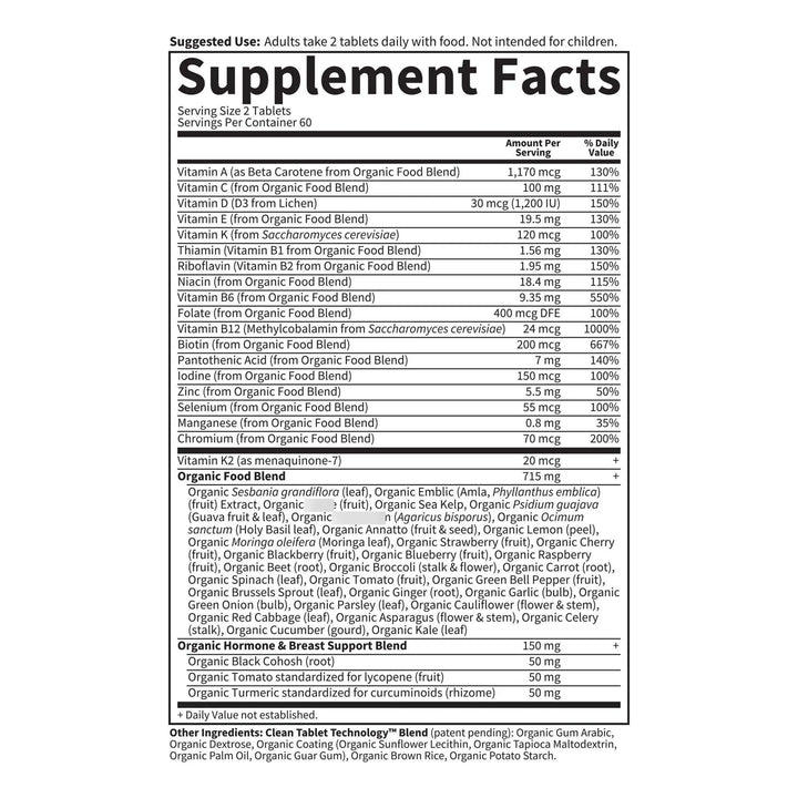 Imagina despertar cada mañana con la vitalidad que creías perdida. Estas tabletas combinan 16 vitaminas y minerales con un toque de sabiduría de la naturaleza: cúrcuma para la inflamación, cohosh negro para el equilibrio hormonal y algas para tu tiroides. Todo en dos pequeñas tabletas diarias que se disuelven suavemente, sin aglutinantes sintéticos.