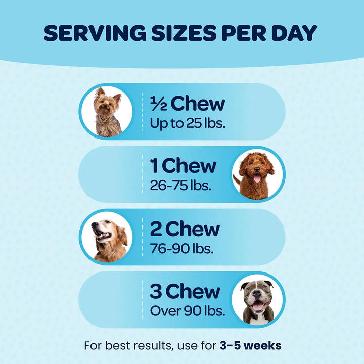 Sabemos lo difícil que puede ser encontrar un suplemento de calidad para tu perro. Muchos productos están llenos de rellenos, soja o maíz, ingredientes que no aportan nada y pueden incluso dañar a tu mascota. Pero con nuestra fórmula American Made, puedes estar seguro de que estás dándole lo mejor: un suplemento masticable delicioso, sin ingredientes artificiales y respaldado por años de investigación en salud canina.