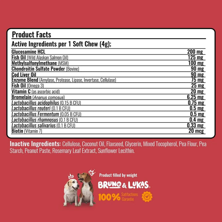 Muchos dueños de mascotas se preocupan por la salud de sus perros, pero no siempre tienen el tiempo o el presupuesto para comprar múltiples suplementos. Aquí es donde nuestro producto marca la diferencia: 8 beneficios esenciales en una sola masticación diaria. Desde apoyo articular hasta un sistema inmunológico reforzado, tu perro recibirá todo el cuidado que merece sin complicaciones. Y lo mejor de todo, ¡les encantará el sabor a salmón!
